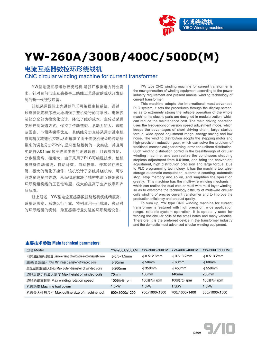 YW-260A/300B/400C/500D(M)電流互感器數(shù)控型繞線機(jī)