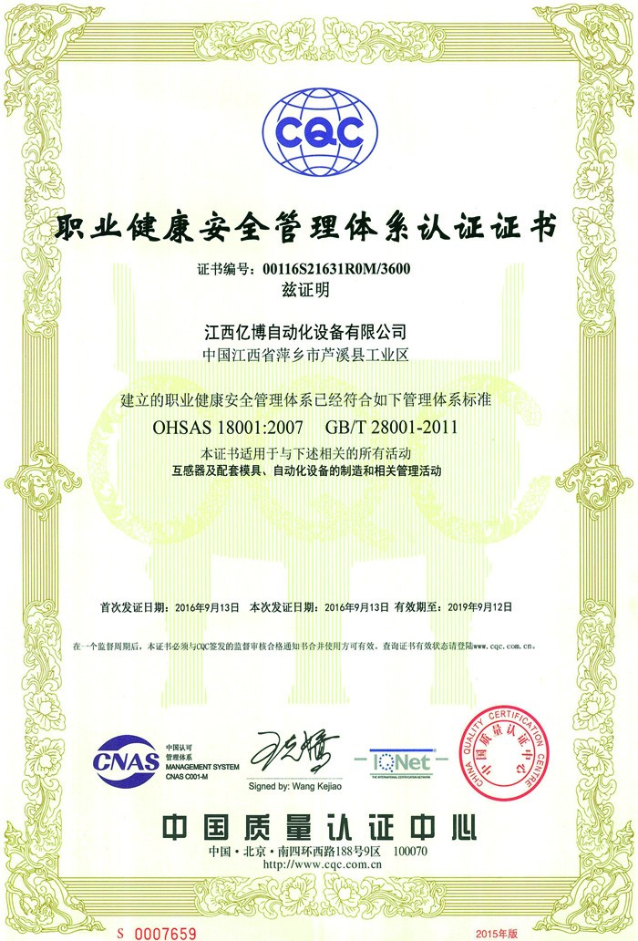 職業(yè)健康安全管理體系認(rèn)證證書 |
