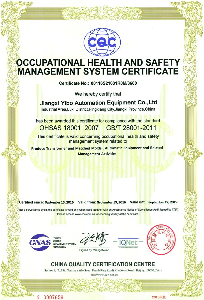 OCCUPATIONAL HEALTH AND SAFETY MANAGEMENT SYSTEM CERTIFICATE